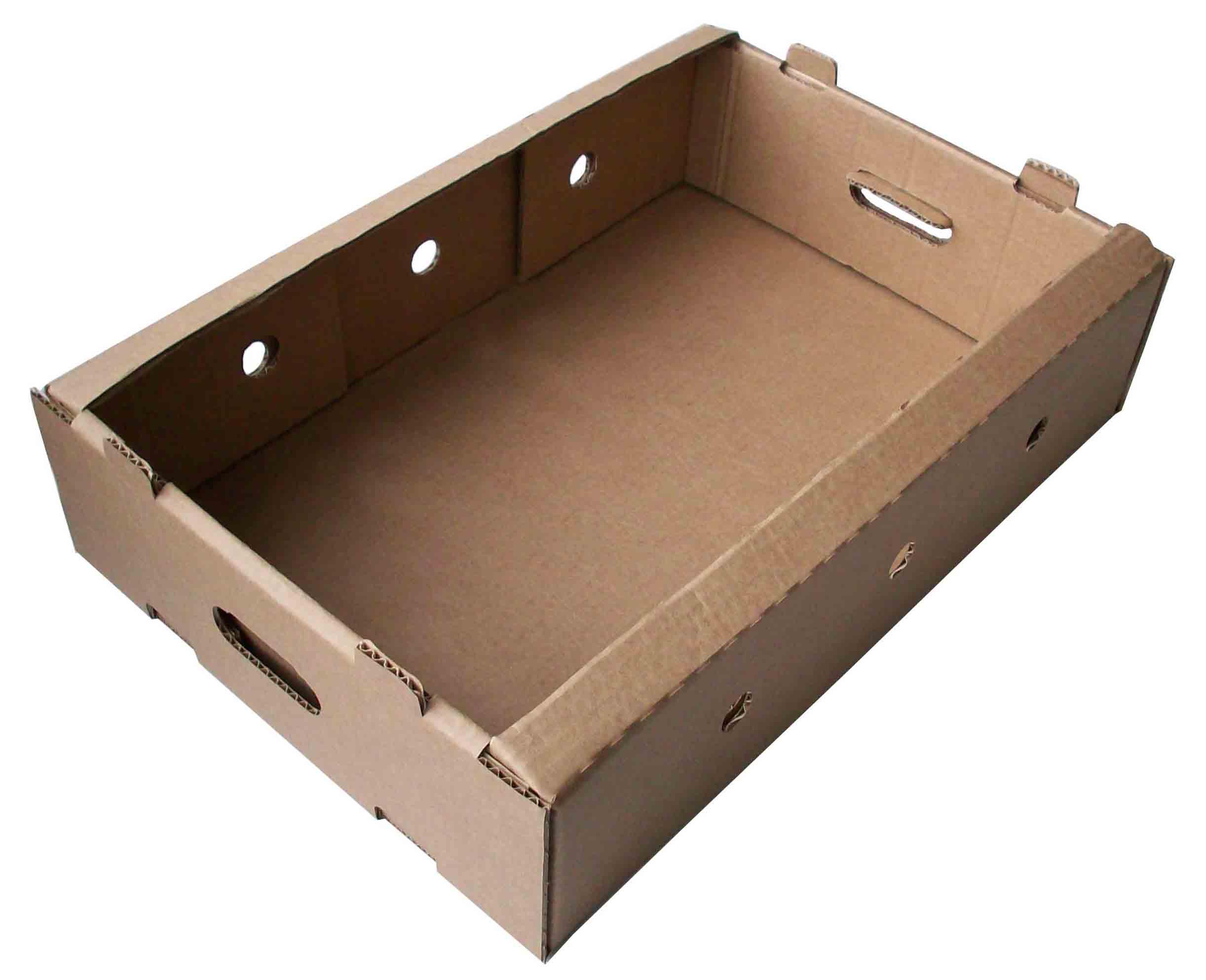 • Мы производим коробки различной сложности, в том числе и укрепленные лотки, пригодные для хранения овощей и фруктов, с возможностью складирования друг на друга. При необходимости возможно нанесение флексопечати.